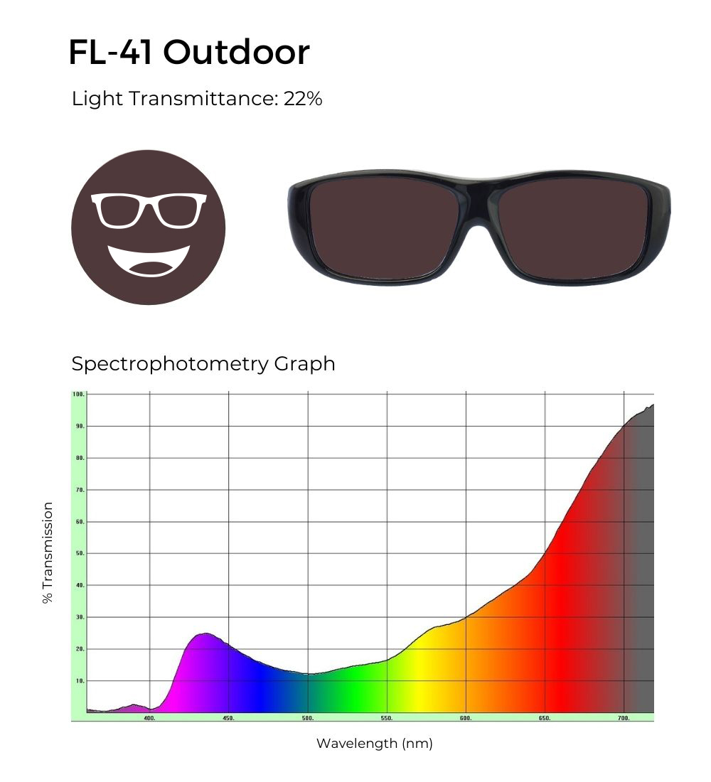 Axon FL41 Outdoor glasses reduce harsh sunlight and glare during outdoor activities. Designed to let in green light, these glasses can reduce photophobia and headache severity.