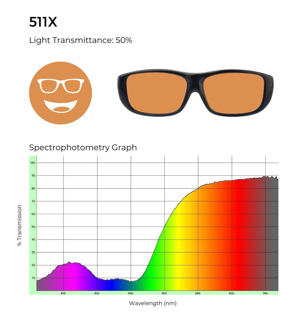 The Corning 511X filter enhances contrast and reduces glare for people with visual impairments by selectively blocking wavelengths that cause discomfort or strain, while allowing beneficial light through.